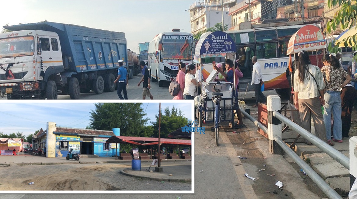 तर, मुलुककै महत्वपूर्ण सिमानाका मानिने सुनौली–बेलहियाको समिपमा रहेको भैरहवास्थित सिद्धार्थ बसपार्क भने सुनसान छ । यो बसपार्कमा गएर हेर्दा दशैं लागेको कुनै आभाष हुँदैन । न यात्रुको चाप देखिन्छ । न त बसको संख्या नै प्रशस्त । लामो दुरीका बसको लाइन बसपार्कमा भन्दा बेलहियास्थित सडक किनारामा हुने गर्छ ।