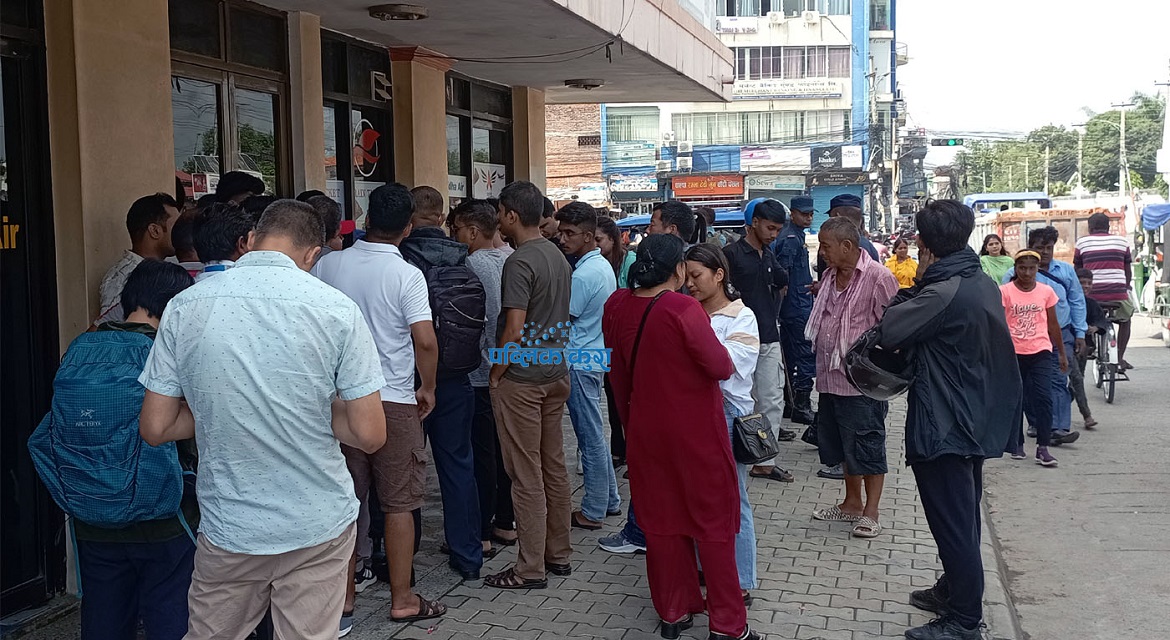 टिकट काट्नका लागि उनीहरु बिहानै काउन्टरमा पुगेका हुन् । विपद्का कारण सार्वजनिक यातायात सञ्चालनमा कठिनाई भएपछि अशक्त, बिरामी, बैदेशिक रोजगारीमा जाने व्यक्ति लक्षित गरेर आइतबार राति ९ बजेका लागि उडान अनुमति मिले पनि प्राविधिक कारण जनाउँदैं नेपाल वायुसेवा निगमले प्रेस बिज्ञप्ती जारी गरेर उडान तालिका सोमबार दिउँसोका लागि सारेको थियो ।